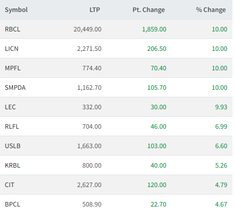 यस्ता छन् आज शेयर बजारमा लगानीकर्तालाई मालामाल बनाउने १० कम्पनी
