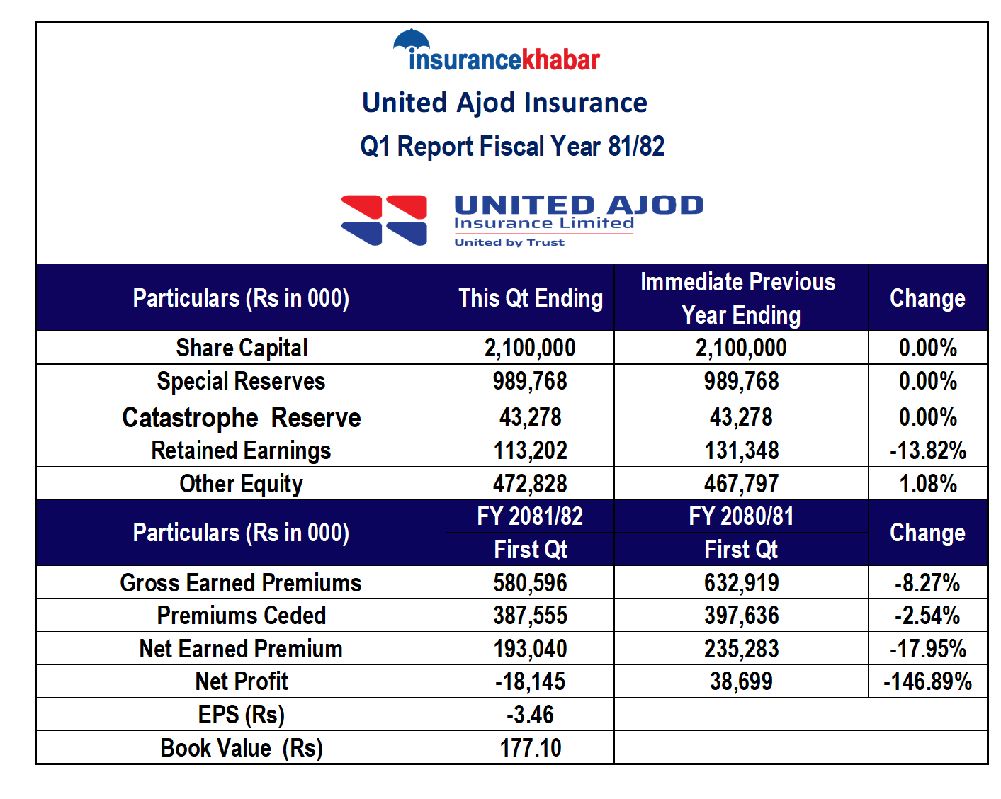 यूनाइटेड अजोडको खुद बीमाशुल्क आर्जन १९ करोड ३० लाख, यस्ता छन् अन्य वित्तीय सूचक