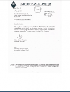 यूनाईटेड फाईनान्सले गर्यो नगद लाभांश प्रस्ताव