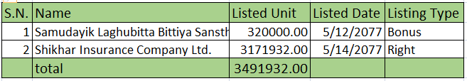 यो साता नेप्सेमा ३४ लाख ९१ हजार कित्ता शेयर सुचिकृत, कुनको कति?