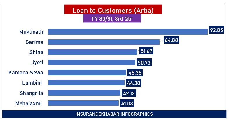 मुक्तिनाथ विकास बैंकले सर्वाधिक ९२ अर्ब ८५ करोड कर्जा प्रवाह गरेको छ भने दोश्रोमा गरिमा विकास बैंकले ६४ अर्ब ८८ करोड कर्जा प्रवाह गर्दा सबै भन्दा कम महालक्ष्मी विकास बैंकले ४१अर्ब ३ करोड कर्जा प्रवाह गरेको छ ।