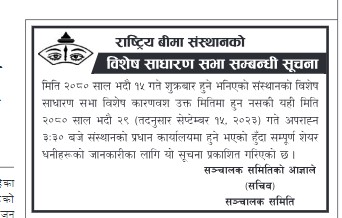 राष्ट्रिय बीमा संस्थानको विशेष साधारण सभाको मिति परिवर्तन, अब कहिले ?
