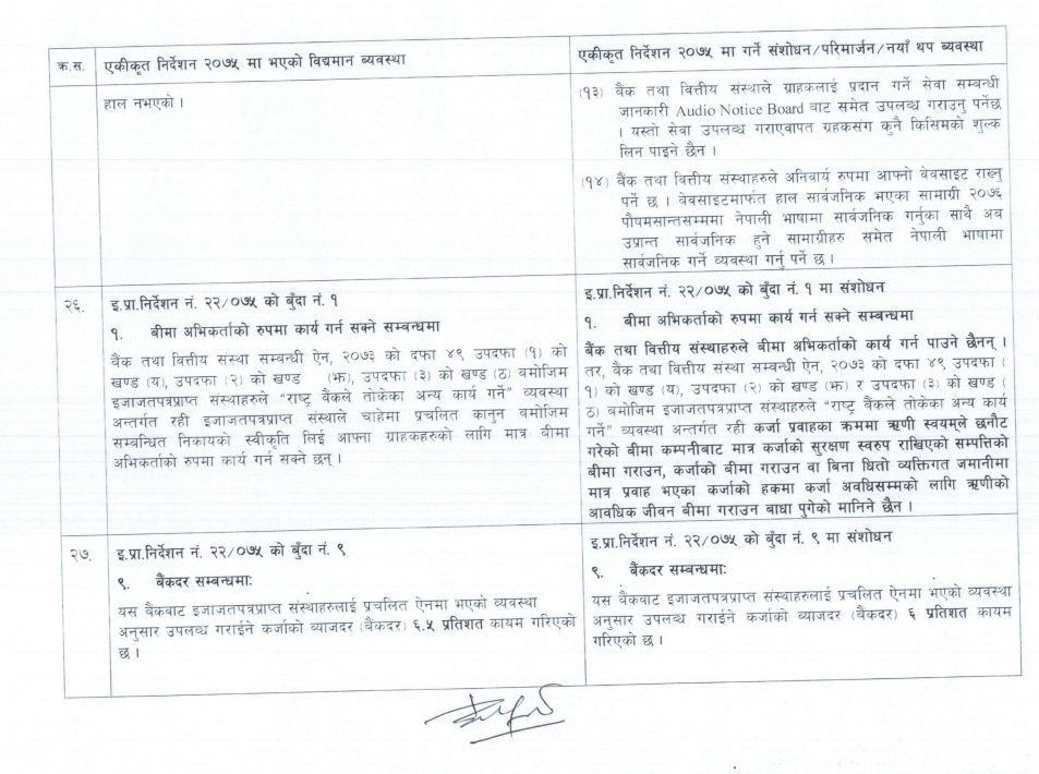 मौद्रिक नीतिलाई सम्बोधन गर्न सोमबार केन्द्रीय बैंकले जारी गरेको एकीकृत निर्देशिकामा बैंकहरुलाई बीमा कम्पनीको बीमा अभिकर्ताको रुपमा दिइदै आएको अनुमति खारेज गरिएको छ । तर, कर्जा प्रवाहमा ऋणी आफैले छानेको कम्पनीमा बीमा गर्न भने बन्जेद नलगाएको राष्ट्र बैंकको एकीकृत निर्देशिकामा उल्लेख छ ।