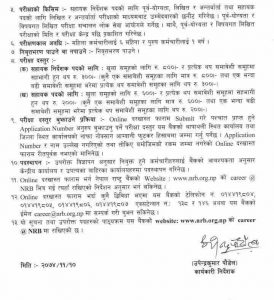 अावेदन गर्न बैंककाे वेभसाइट www.nrb.org.np मा गएर Career @ NRB भित्र गर्इ त्यहाँ राखिएकाे निर्देशन अनुसार भर्न सकिने राष्ट्र बैंकले जनाएकाे छ । अनलाइन दरखास्त फाराम फागुन ११ गतेदेखि चैत्र १ गतेसम्म अनलार्इन अावेदन बुझाउन सकिने राष्ट्र बैंकले जनाएको छ । दोब्बर दस्तुर तिरेर चैत्र ८ गतेसम्म बुझाउन सकिने केन्द्रीय बैंकले जनाएको छ । अनलार्इन अावेदन गर्न सक्ने सुबिधा सहित राष्ट्र बैंकले जनशक्ति माग गरेको यो पहिलो पटक हो !