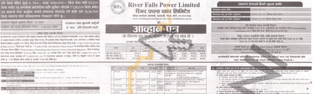रिभर फल्स पावरले आजदेखि आइपीओ विक्री गर्दै, कति कित्ता दिने आवेदन ?