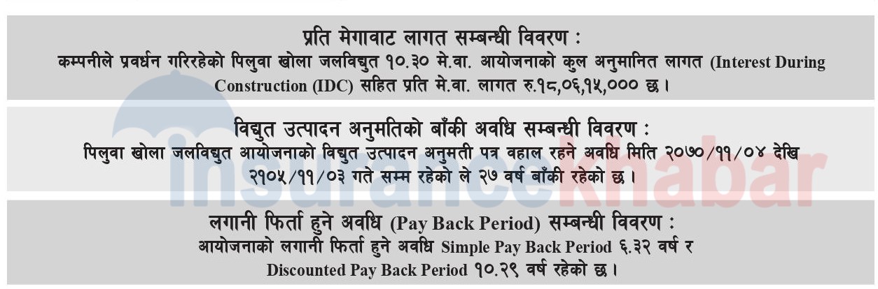 आयोजनाको साधारण लगानी फिर्ता हुनेअवधि : ६.३२ वर्ष