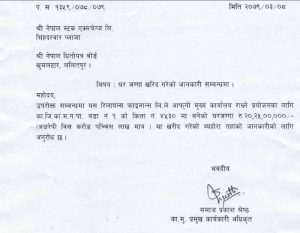 फाइनान्सले कित्ता नं ४५३० मा बनेको २० करोड २५ लाख रुपैयाँको घरजग्गा खरिद गरेको हो ।