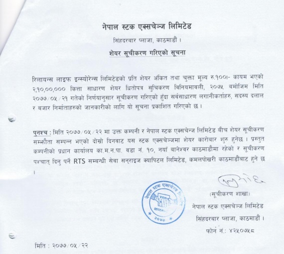 रिलायन्स लाइफको आजबाट शेयर कारोबार खुल्ला हुने, ओपन रेञ्ज कति ?