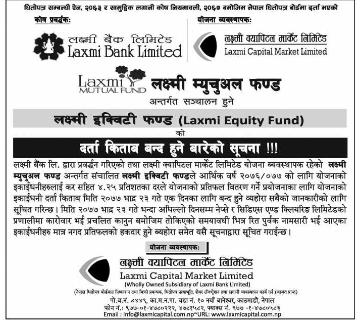 लक्ष्मी इक्विटी फण्डको बुक क्लोज मिति तय