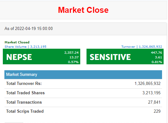 मंगलबार कारोबारको पछिल्लो समयमा मात्रै सुधार देखिएकाले कारोबार रकम खासै बढ्न सकेन । आज एक अर्ब ३२ करोड रुपैयाँको कारोबार हुँदा सम्पुर्ण सूचकमा सुधार देखिएको छ । शेयर बजार धेरै नै तल झरिसकेको हुँदा लगानीकर्ताहरु सस्तोमा शेयर खरिद गर्ने पर्खाइमा छन् ।