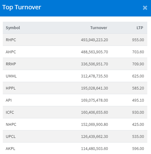 हकप्रदकै हल्लै हल्लामा अपि पावरको पनि केहि समयदेखि सर्वाधिक धेरै कारोबार हुँदै आएको छ । आज सर्वाधिक १० धेरै कारोबार हुने कम्पनीमा आइसिएफसी पनि हो । मूल्य ३९ रुपैयाँले ओरालो झर्दा कारोबार रकम भने बढेको हो ।