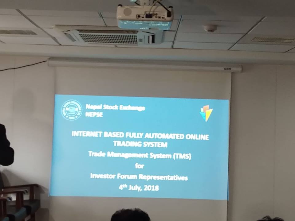 इन्स्योरेन्स खबर/काठमाडौँ: नेप्सेको आयोजनामा सफ्टवेयर निर्माता कम्पनी वाईको नेपाल कम्पनीले आज तीनवटै लगानीकर्ता सङ्घ सङ्गठनलाई निकट भविष्यमा आउने अन्लाईन ट्रेडिङ्ग को डेमो देखाउँदै छ।