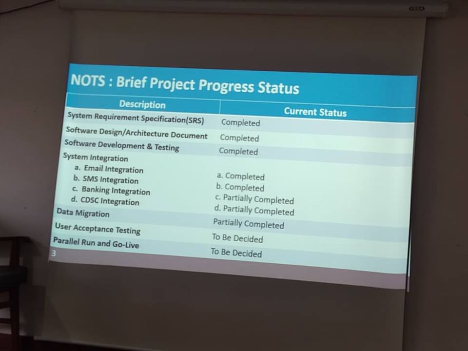 इन्स्योरेन्स खबर/काठमाडौँ: नेप्सेको आयोजनामा सफ्टवेयर निर्माता कम्पनी वाईको नेपाल कम्पनीले आज तीनवटै लगानीकर्ता सङ्घ सङ्गठनलाई निकट भविष्यमा आउने अन्लाईन ट्रेडिङ्ग को डेमो देखाउँदै छ।