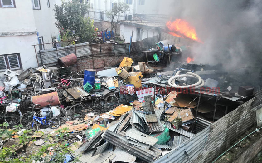 ललितपुरको पुल्चोकस्थित उत्तर कोरियाली दूतावास नजिकै रहेको एक कवाडीखानामा भीषण आगलागी भएको हो । आइतबार बिहान ११ः१५ बजेदेखि लागेको आगो नियन्त्रण बाहिर गएको छ । आगो के कारणले लागेको हो भन्ने खुल्न सकेको छैन । साथै उक्त कवाडीखानाभित्र अरु पनि मानिसहरु रहेको हुनसक्ने आशंका गरिएको भएपनि यो समाचार तयार गर्दासम्म पुष्टि भइसयकेको छैन । घाइते अवस्थाका व्यक्ति जल्दै बाहिर निस्केका थिए ।
