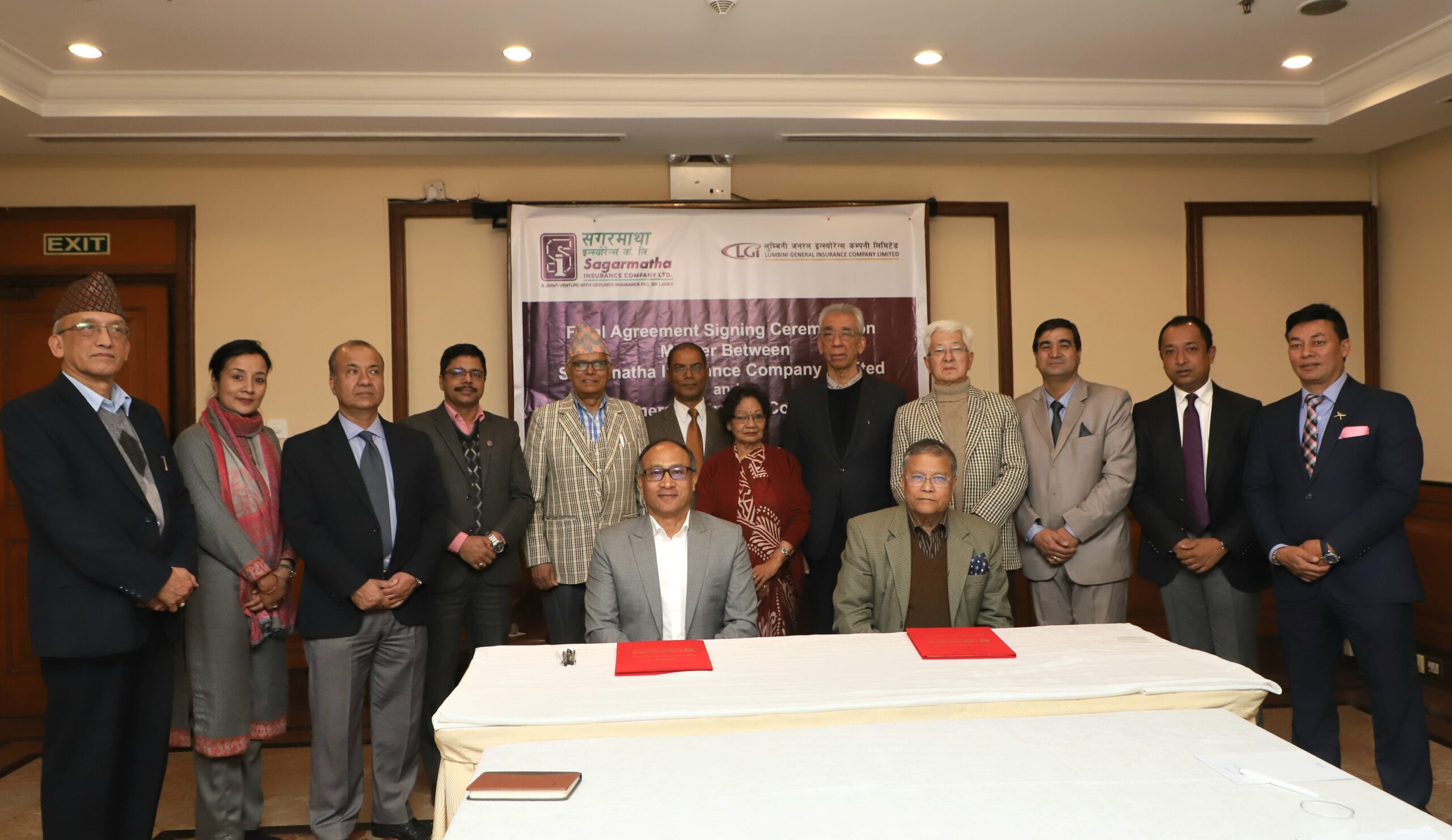 काठमाडौं । सगरमाथा इन्स्योरेन्स कम्पनी र लुम्बिनी जनरल इन्स्योरेन्स कम्पनीले मर्जरको लागि अन्तिम सम्झौतापत्रमा हस्ताक्षर गरेका छन् । आज माघ १७ गते मङगलबार यी दुई कम्पनीले होटल र्याडिसन लाजिम्पाट  काठमाडौंमा एक कार्यक्रमको आयोजना गरी अन्तिम सम्झौतापत्रमा हस्ताक्षर गरेका हुन् । सम्झौतापत्रमा लुम्बिनी जनरल इन्स्योरेन्सका तर्फबाट अध्यक्ष मनोहर दास मुल र सगरमाथा इन्स्योरेन्सका तर्फबाट अध्यक्ष रामकृष्ण मानन्धरले हस्ताक्षर गरेका हुन् ।
