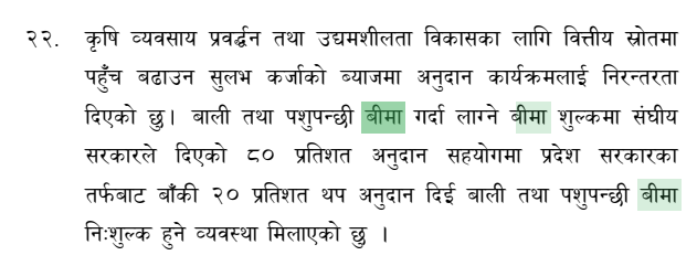 आर्थिक मामिला तथा सहकारी मन्त्री कृष्ण ध्वज खड्काले आगामी आर्थिक वर्ष २०७९/८० को बजेट वक्तव्य मार्फत निशुल्क बाली तथा पशुपन्छी बीमाको घोषणा गरेका हुन् ।