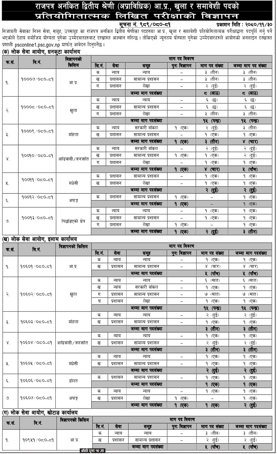 काठमाडौं । लोकसेवा आयोगले धेरै संख्यामा कर्मचारी दरखास्त आह्वान गरेको छ । आयोगले राजपत्र अंकित द्वितीय श्रेणीका पदहरुमा आ.प्र, खुल्ला र समावेशी प्रतियोगिता परीक्षाद्वारा पदपूर्ति गर्नुपर्ने भएकाले दरखास्त आह्वान गरेको हो ।