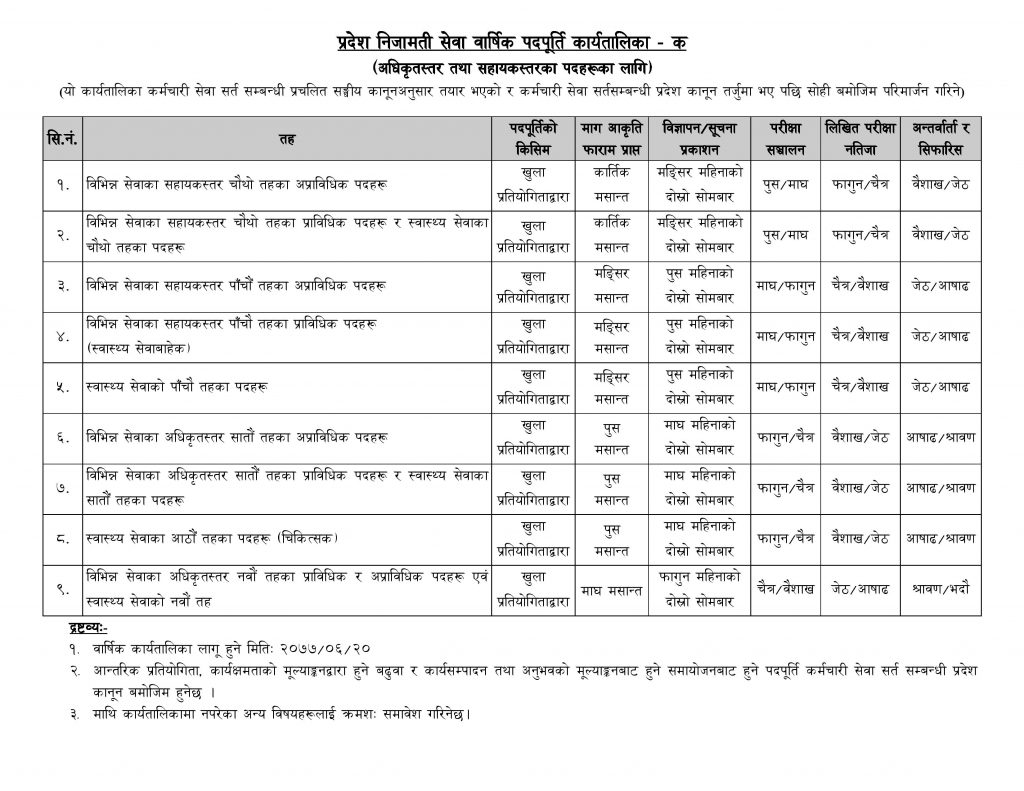 आयोगले प्रदेशका स्थानीय तह र बागमती प्रदेशका दुई मन्त्रालय गरी सहायक स्तर चौथो तहका चार सय ६९ जना कर्मचारी माग गरेको छ ।आयोगले उक्त प्रदेशका लागि ४४ वटा स्थानीय तह र बागमती प्रदेशको दुई वटा मन्त्रालयका २२ जना गरेर ४ सय ६९ जनाको दरवन्दी माग गरेको हो ।