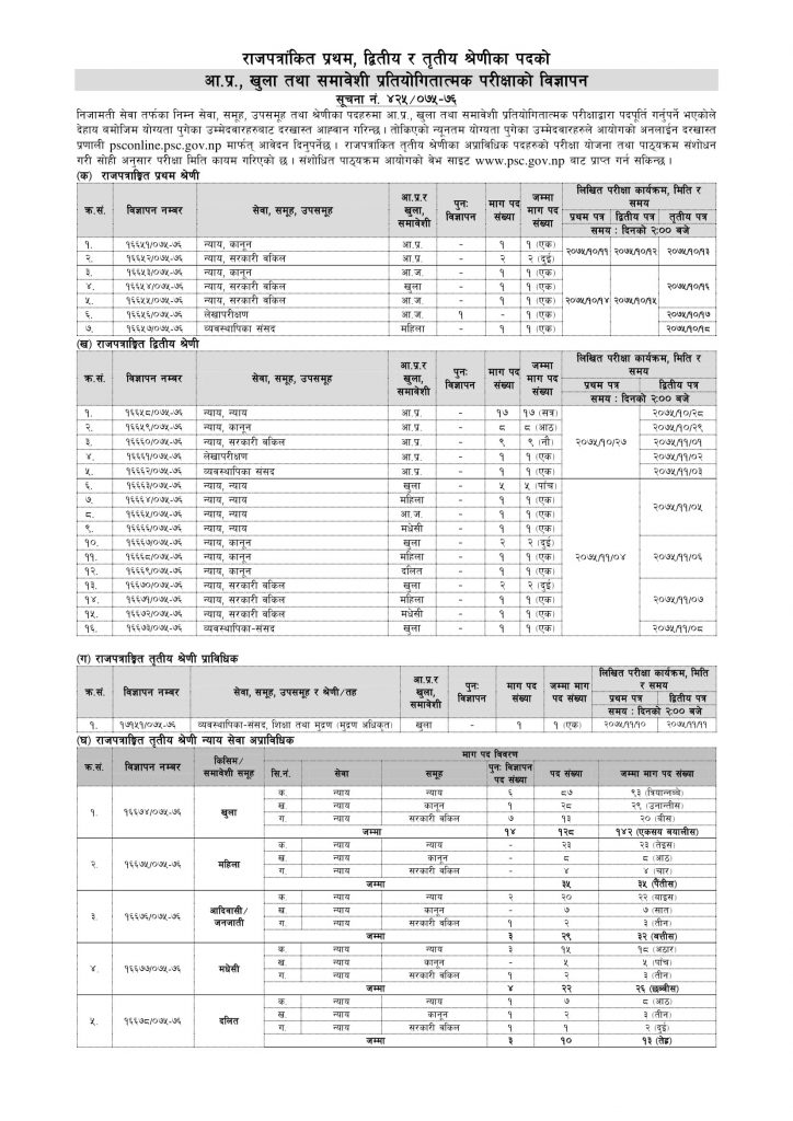 काठमाडौं । लोकसेवा आयोगले विभिन्न पदको लागि ७ सय भन्दा बढी कर्मचारी माग गरेको छ । आयोगले फाल्गुण २८ गते एक सूचना प्रकाशित गरी राजपत्र अनंकिन द्धितिय श्रेणी पदका लागि कर्मचारी माग गरेको हो ।आयोगले खुला तथा समावेशी प्रतियोगिताद्वारा पदपूर्ती गर्ने गरी दरखास्त आह्वान गरेको हो ।