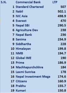 यसैगरी प्रतिकित्ता ३०० रुपैयाँभन्दा कम शेयरभाउ भएका ५ वटा वाणिज्य बैंकहरु छन्। जसमा नेपाल एसबीआई, कृषि विकास, नेपाल बैंक, सानिमा र सिद्धार्थ बैंक छन्।