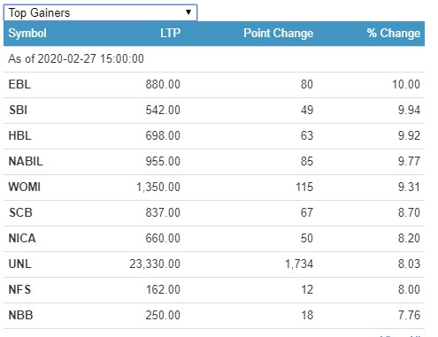 आज सबैभन्दा धेरै एभरेष्ट बैंकका लगानीकर्ताले १० प्रतिशतका दरले कमाएका छन् । नेपाल एसबिआई बैंक, हिमालयन बैंक, नबिल बैंक, वोमी माइक्रोफाइनान्सका लगानीकर्ताले ९ प्रतिशतभन्दा बढीका दरले कमाएका छन् । एनआइसी एशिया बैंक, यूनिलिभर नेपाल र नेपाल फाइनान्सका लगानीकर्ताले ८ प्रतिशतका दरले कमाएका छन् ।