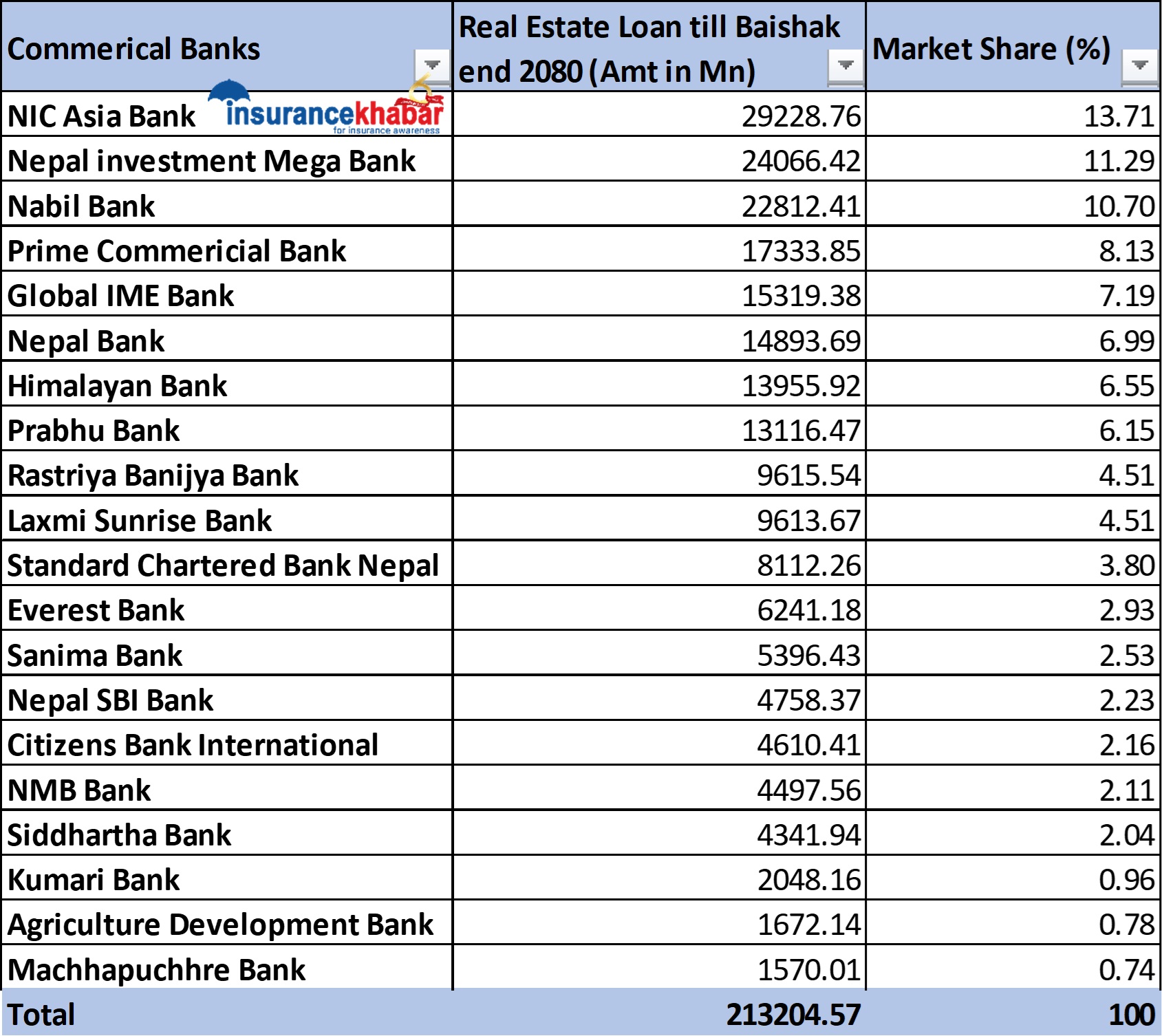 वाणिज्य बैंकमध्ये सबैभन्दा एनआईसी एसियाले घरजग्गामा कर्जा प्रवाह गरेको देखिएको छ। यो १० महिनामा एनआईसी एसियाले २९ अर्ब २२ करोड रुपैयाँ कर्जा लगानी गरेको छ। यो कुल रियल स्टेट कर्जाको १३.७१ प्रतिशत हिस्सा हो।