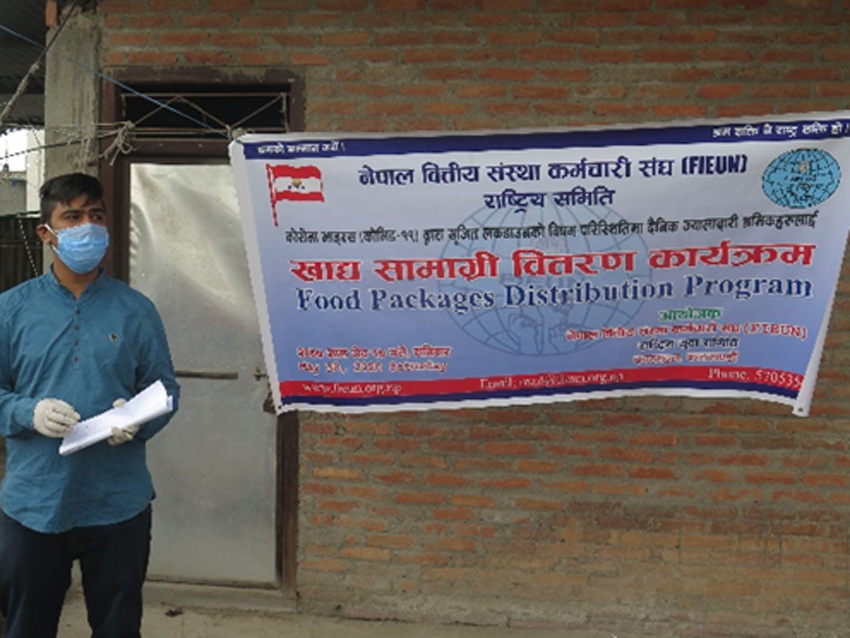 फियनका वरिष्ठ उपाध्यक्ष धर्म प्रसाद खनालले लकडाउनका कारण समस्यामा रहेका अनौपचारिक क्षेत्रका श्रमिकहरुलाई दैनिक उपभोग्य बस्तुहरु सहयोग गरिएको बताए । राहत वितरण कार्यक्रममा नेपाल टे«ड युनियन काँग्रेसका केन्द्रीय सदस्य बलदेव तामाङ्ग, फियनका बरिष्ठ उपाध्यक्ष धर्म प्रसाद खनाल, नेपाल अटो रिक्सा, ईरिक्सा तथा रिक्सा ठेला सम्बद्ध श्रमिक संघका अध्यक्ष खिला बस्नेत, फियनका उपाध्यक्ष परशुराम खनाल, महासचिव हरिराज खरेल, फियन सहकारीका अध्यक्ष बासुदेव खत्रीलगायतका मजदुर सम्बद्ध नेताहरुको उपस्थिति रहेको थियो ।