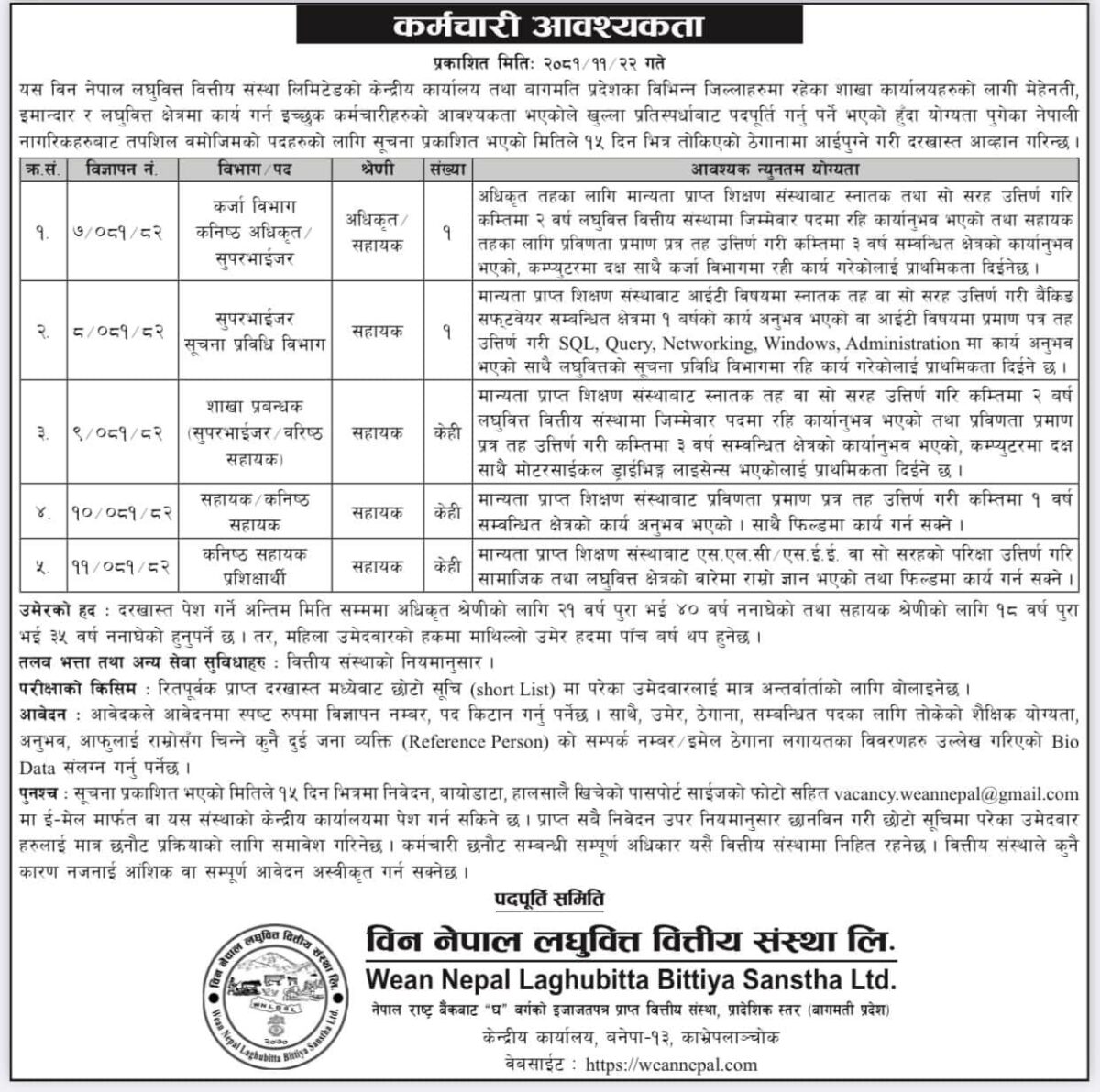 विन नेपाल लघुवित्तले माग्यो धेरै पदका लागि कर्मचारी