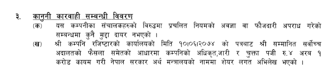 सर्वसाधारण शेयरधनीले कम्पनीको साधारणसभा आयोजना गर्न रोक लगाउन्जेल लाभांस पाउन सक्दैनन् । अर्को तर्फ साधारणसभा डाक्ने वित्तीकै सर्वोच्चको फैसला कार्यान्वयन गर्नै पर्ने हुन्छ तसर्थ शेयरधनीले यथार्थ बुझेर लगानी गर्दा सबैभन्दा उपयुक्त हुन्छ ।