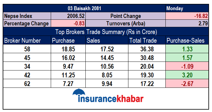 वैशाख ३ : ठूला ब्रोकरबाट खरीद धेरै कि विक्री ?