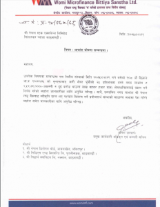 वोमी माईक्रोफाईनान्स वित्तीय संस्थाको १०८ औँ बैठकले आ.व २०७४/ ७५ मा आफ्ना शेयरधनीहरुलाई लाभांश दिने प्रस्ताव पेश गरेको छ । संचालक समितिको बैठकले २५ प्रतिशत नगद लाभांस दिने निर्णय गरेको छ । प्रस्तावित लाभांस वितरण भने नेपाल राष्ट्र बैंक बाट स्वीकृत भएपछि गरिने भएको छ।