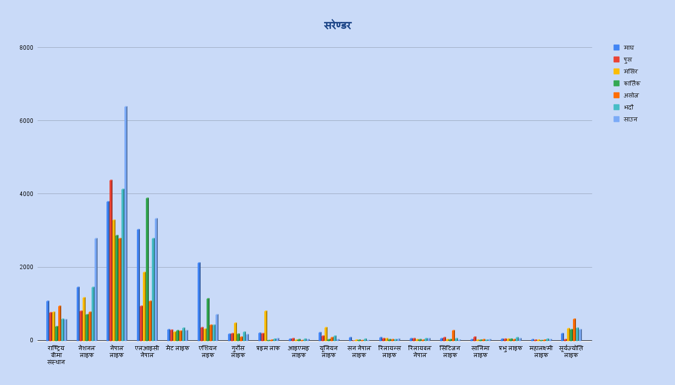नेपाल बीमा प्राधिकरणका अनुसार चालु आर्थिक वर्षको ७ महिनाको अवधिमा ५३ हजार भन्दा बढी पोलिसी सरेण्डर भएका छन् । उक्त पोलिसी सरेण्डर हुँदा ७ अर्ब ७६ करोड रुपैयाँ बराबरको पोलिसी सरेण्डर भएको छ । यति ठुलो संख्यामा भइरहे*को सरेण्डर बीमा क्षेत्रमा देखिएको समस्या भन्दा पनि समग्र अर्थतन्त्रमै देखिएको संकटले गर्दा भएको जीवन बीमक संघ नेपालका अध्यक्ष पोषकराज पौडेलले जानकारी दिए । उनले भने ‘बीमा कम्पनीको पोलिसी मन नपरेर वा बीमा कम्पनीले सेवा नदिएर भन्दा पनि समग्र अर्थतन्त्रमा समस्या देखिदा सरेण्डर बढेको हो ।’