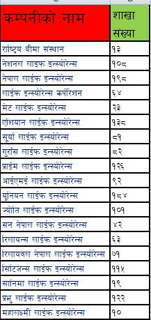 उक्त कम्पनीले बीमा समितिबाट मुलुकभर १९८ वटा शाखा सञ्चालनको अनुमती पाएको छ । नेशनल लाईफ इन्स्योरेन्स कम्पनीले भने १०८ वटा शाखा सञ्चालनको अनुमती लिएको छ । प्राईम लाईफ इन्स्योरेन्सले १२६ वटा शाखा सञ्चालनको अनुमती लिएको छ ।