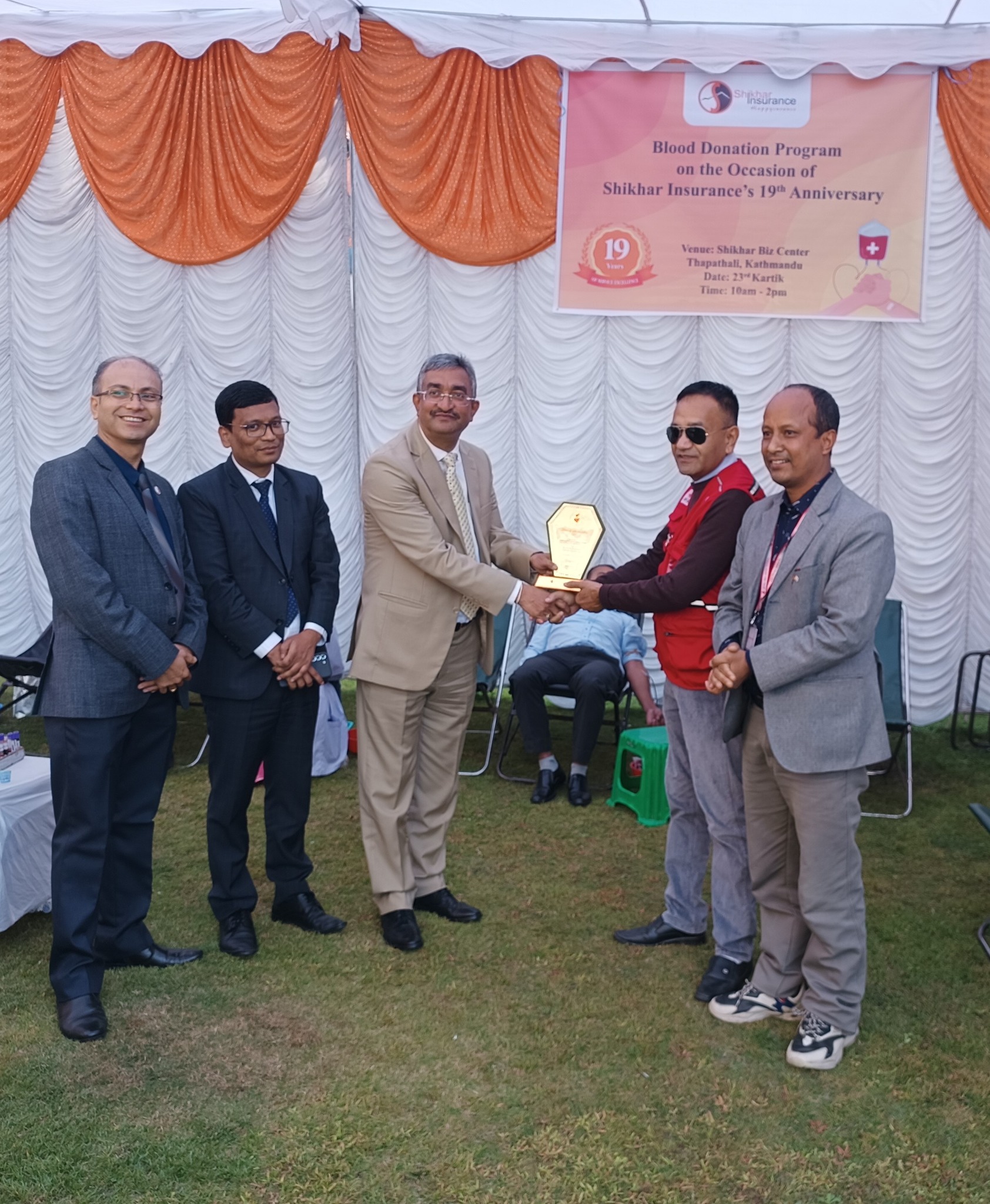 काठमाडौं । शिखर इन्स्योरेन्स कम्पनी लिमिटेडले कम्पनीको १९ औं बार्षिक उत्सवको अवसरमा रक्तदान कार्यक्रम सम्पन्न गरेको छ । कम्पनीले नेपाल रेडक्रस सोसाईटीको सहयोगमा कार्तिक २१ देखि २३ गतेसम्म ३ दिने राष्ट्रव्यापी रुपमा भएको रक्तदान कार्यक्रम सम्पन्न गरेको हो । साथै उक्त कार्यक्रमबाट १०६० पिन रगत संकलन भएको छ ।