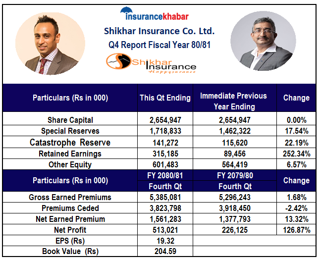 काठमाडौं । शिखर इन्स्योरेन्सले आर्थिक वर्ष २०८०।८१ को चौथो त्रैमाससम्मको वित्तीय विवरण प्रकाशन गरेको छ।