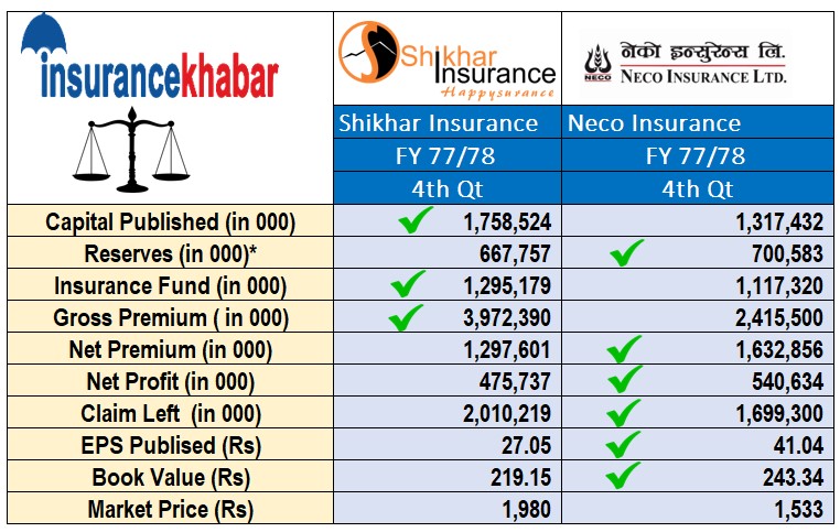 नेको र शिखर इन्स्योरेन्सलाई दाँजेर हेर्दा ?