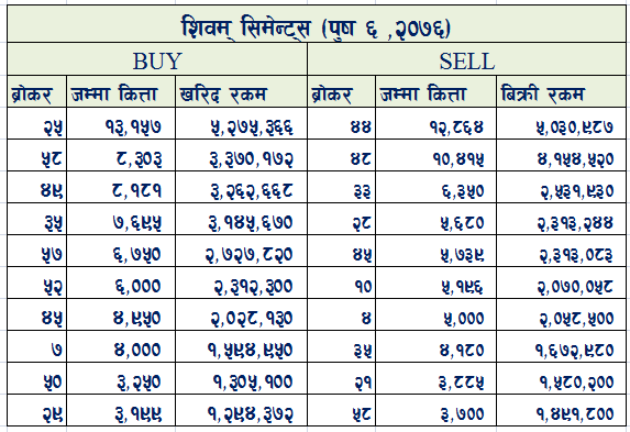 शिवम सिमेण्ट्सको अघिल्लो पटकको बुलमा ५८ नम्बर ब्रोकरबाट सर्वाधिक खरिद बिक्री भएको थियो।