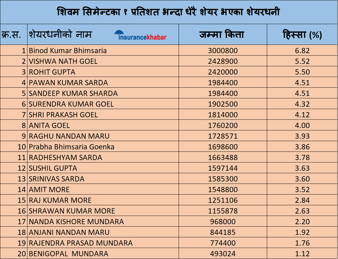 कम्पनीले आइपिओ निष्काशन गर्दा योयलको नाममा ४६ लाख ४६ हजार ४०० कित्ता शेयर थियो । गोयल कार्यकारी अध्यक्ष समेत हुन् । अहिले गोयलको नाममा जम्मा १९ लाख २ हजार ५०० कित्ता मात्रै शेयर छ । जवकी यस अवधिमा गोयल निरन्तर कम्पनीको सञ्चालक समिति अध्यक्ष हुन् । उनले ६०० रुपैयाँ भन्दा माथिको मूल्यमा शेयर खरिद बिक्री गरेको पाइएको छ । नेपाल स्टक एक्सचेन्जबाट विगत एक वर्षको अवधिमा भएको सर्वाधिक ठुलो कारोबारलाई हेर्दा ६०० देखि ८०० सय रुपैयाँको कारोबार भएको देखिन्छ ।