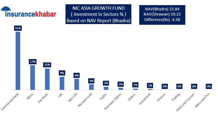एनआइसी एशिया ग्रोथ फण्डले सुचिकृत शेयरमा भाद्र मसान्तको बजार मूल्यको आधारमा १ अर्ब ३ करोड बराबरको लगानी गरेको छ भने श्रावन महिनामा भने सो शीर्षकमा १ अर्ब १४ करोड लगानी थियो।