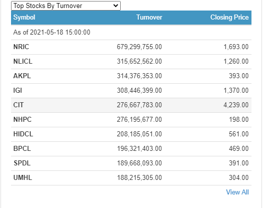 काठमाडौं । आज शेयर बजारमा नयाँ रेकर्ड कायम भएको छ । आज नेप्से परिसूचक र कारोबार रकमले नयाँ रेकर्ड कायम गर्दा सबैभन्दा धेरै नेपाल पुनर्बीमाको ६७ करोड १५ लाख रुपैयाँको शेयर कारोबार भएको छ । आज कम्पनीको शेयर मुल्य ४० रुपैयाँले बढेर १९ सय ९३ रुपैयाँमा कायम भएको छ । नेशनल लाइफ इन्स्योरेन्स कम्पनीको ३१ करोड ५६ लाख रुपैयाँको कारोबार भएको छ । कम्पनीको शेयर मुल्य ८० रुपैयाँले बढेको छ ।