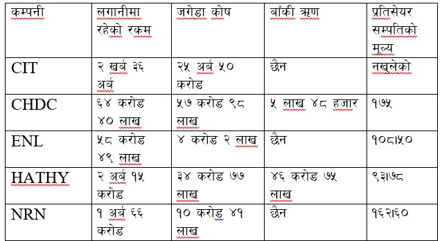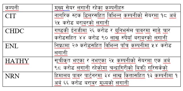 मुख्य शेयर लगानी रहेका कम्पनीहरु