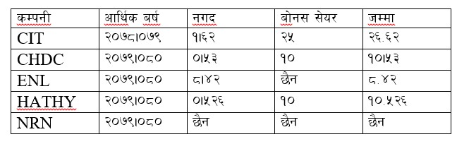 गत वर्षको नाफाबाट लाभांश वितरण गरेको आधारमा हेर्दा