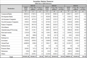 यो कुल कारोबारमा डिबेन्चर तथा म्युचुअल फन्ड इकाइ किनबेचसमेत रहेको छ।