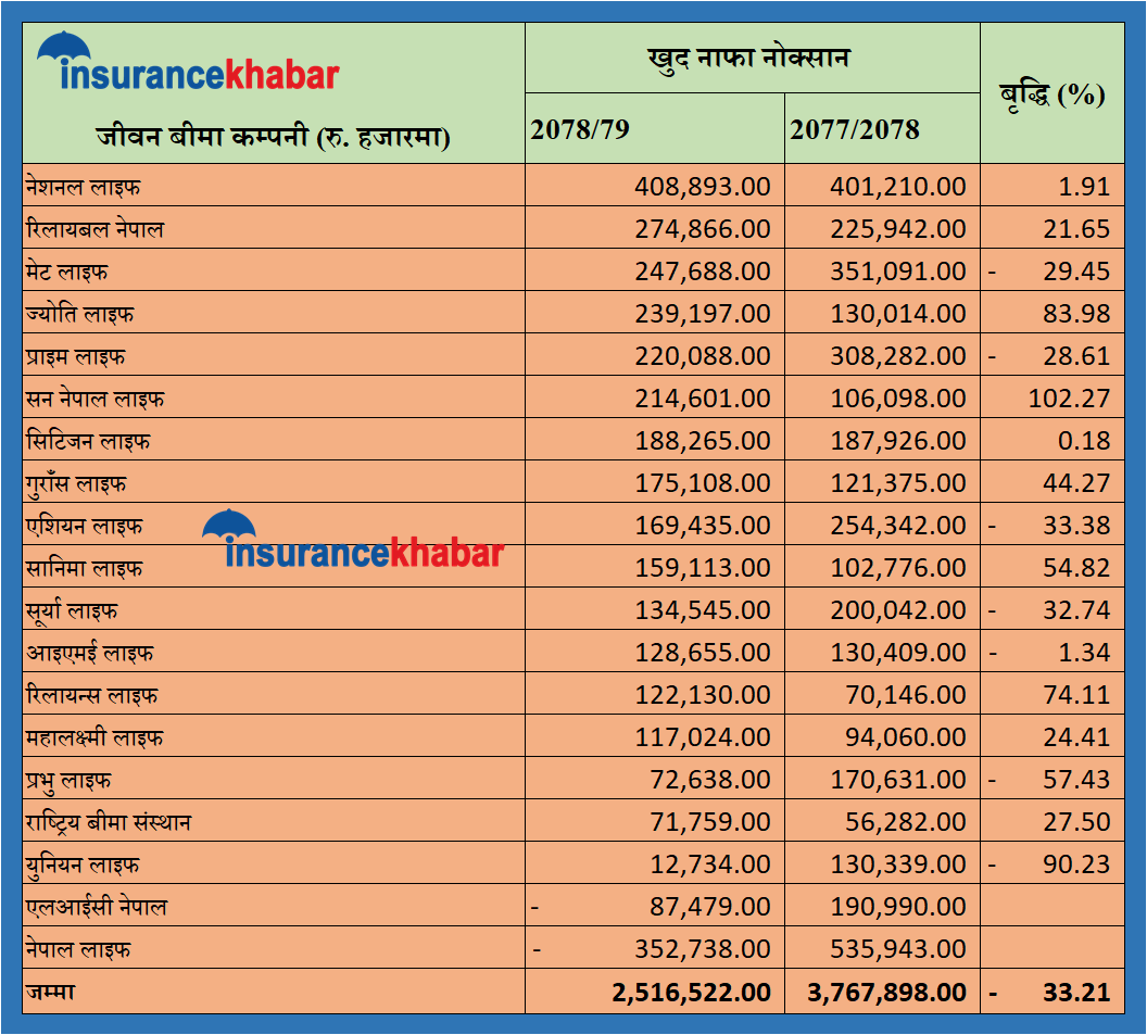 जीवन बीमा कम्पनीहरुको मुनाफा एक्चुरियल मूल्याङ्कन पछि कम्पनीको सम्पत्ती र दायित्वको मूल्याङ्कन पछि मात्रै निर्धारण हुन्छ । बीमा कम्पनीहरुको एक्चुरियल मूल्याङ्कन पछि अपरिस्कृत वित्तीय विवरणको भन्दा बढ्ने गरेको छ । तर कतिपय अवस्थामा घट्ने पनि गरेको छ । त्यसैले यहि आधारमा मात्रै बीमा कम्पनीको मुनाफालाई हेरेर निर्णय गर्नु हुँदैन । तर अहिले नाफा बढेको वा घटेको विवरणले एक्चुरियल मूल्याङ्कन पछिको अवस्थालाई भने केहि हदसम्म अनुमान गर्न सकिन्छ ।
