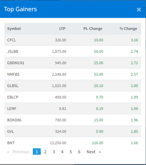 सर्वाधिक धेरै बढेका १० कम्पनी मध्ये बाँकी ५ कम्पनीहरु क्रमश ग्रिन भेन्चर, बोटलर्स नेपाल, नेपाल पुनर्बीमा, सपोर्ट फाइक्रोफाइनान्स, माहुली र आइएमई जनरल छन् ।