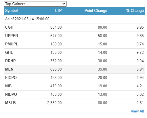 काठमाडौं । आज शेयर बजार ५१ दशमलव २३ अंकले घट्दा चन्द्रागिरी हिल्सका लगानीकर्ताले सबैभन्दा बढी प्रतिशतका दरले कमाएका छन् । कम्पनीका लगनाीकर्ताले ९ दशमलव ९५ प्रतिशतका दरले कमाएका छन् । अपर तामाकोशीका लगानीकर्ताले ९ दशमलव ८५ प्रतिशतका दरले कमाएका छन् ।