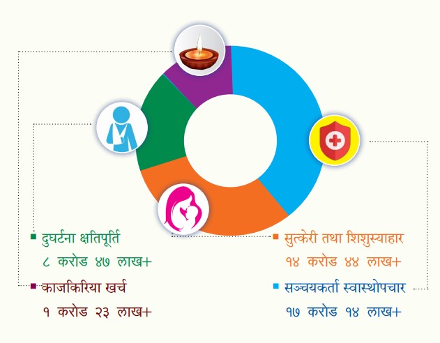 त्यसैगरी दुर्घटना क्षतिपूर्ति अन्तर्गत ४ सय २४ जना सञ्चयकर्तालाई ८ करोड ४७ लाख रुपैयाँ वितरण गरिएको छ । काजकिरिया अनुदान स्वरुप ३ सय ८ आश्रित परिवारलाई १ करोड २३ लाख रुपैयाँ राहत वितरण गरिएकाे छ ।