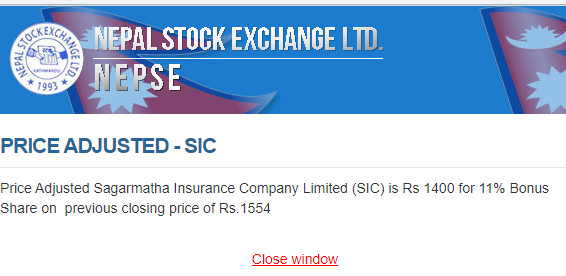 कम्पनीको बुधबारको अन्तिम कारोबार मूल्य १ हजार ५ सय ५४ रुपैयाँ लाई आधार मानेर मूल्य समायोजन गरिएको हो । आज यस मूल्यलाई आधार मानेर नेप्सेमा कम्पनीको शेयर कारोबार खुल्नेछ ।
