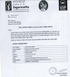 काठमाडौं । सगरमाथा इन्स्योरेन्स कम्पनी लिमिटेडको कार्यान्वयन अधिकृत (कम्प्लायन्स अफिसर) मा भगवान व्यापक गौंडेल नियुक्त भएका छन् ।