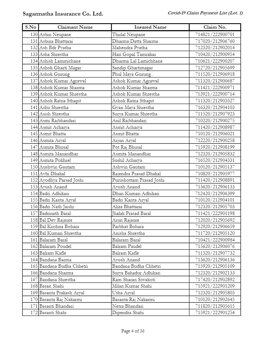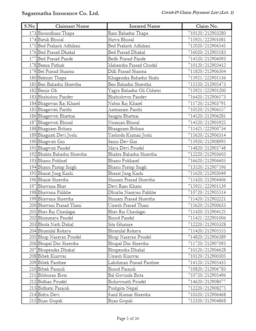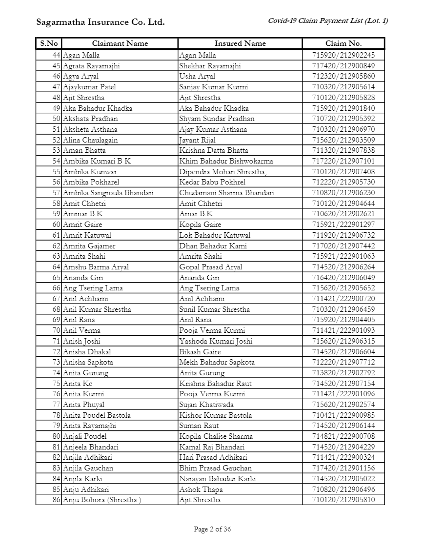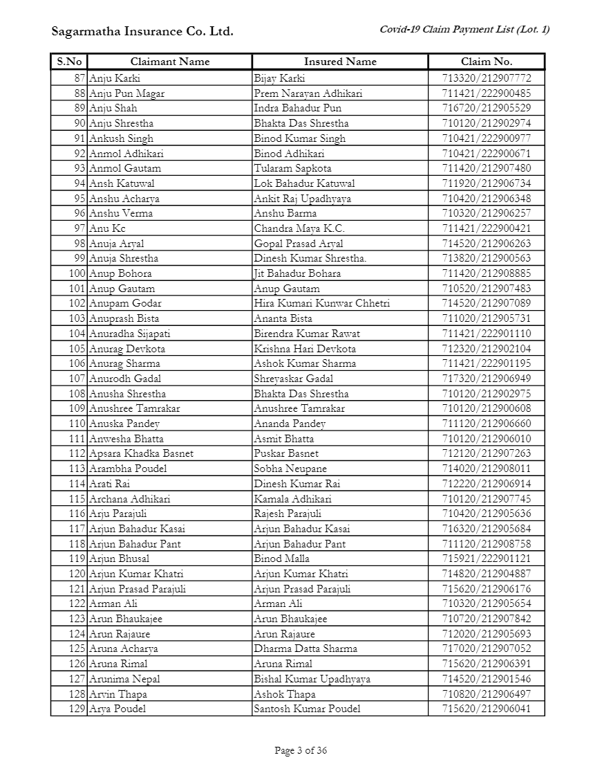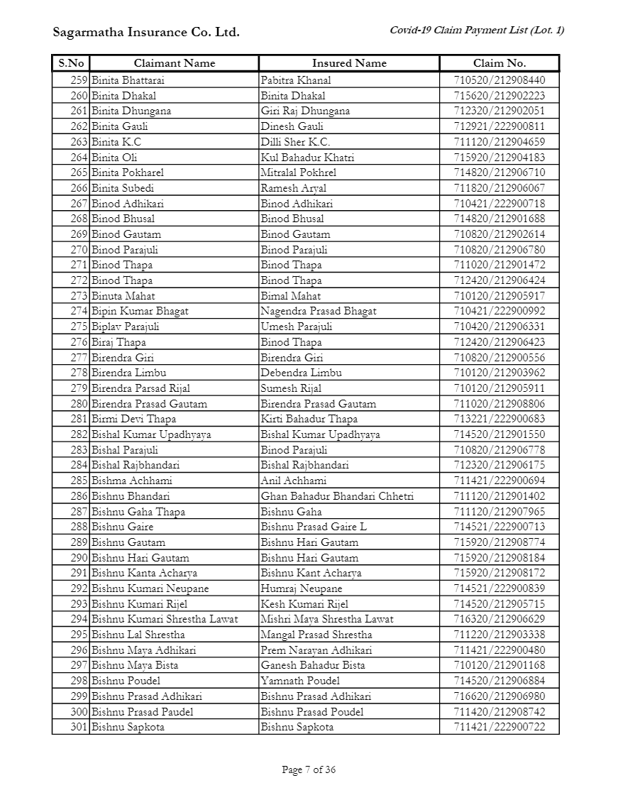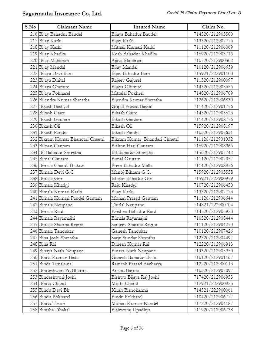 यस बाहेकका दाबीकर्ताहरुको हकमा नेपाल सरकार र नेपाल बीमा प्राबिधिकरणबाट आगामी दिनमा निर्णय अनुसार क्रमश भुक्तानी गर्ने जनाएको छ ।